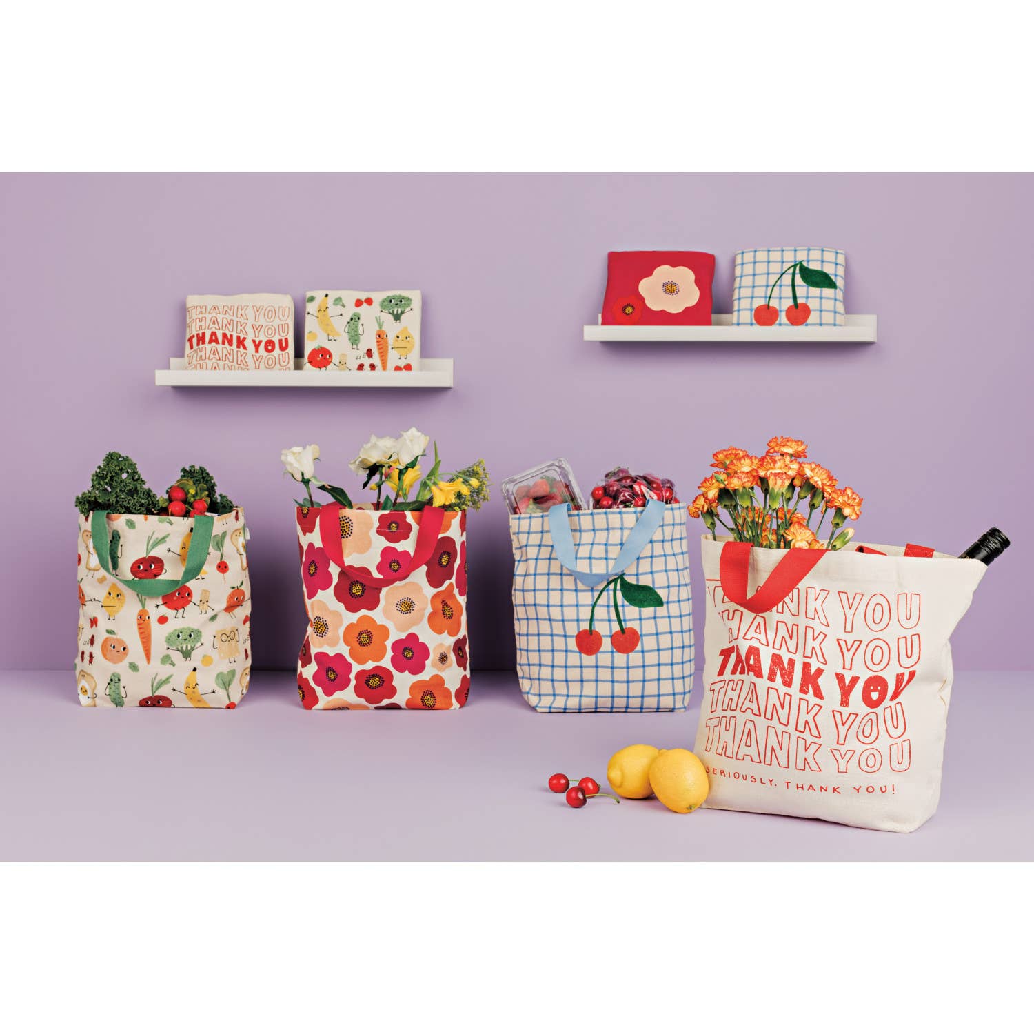 A cheerful, foldable cherry-print tote that makes everyday errands feel a little sweeter.