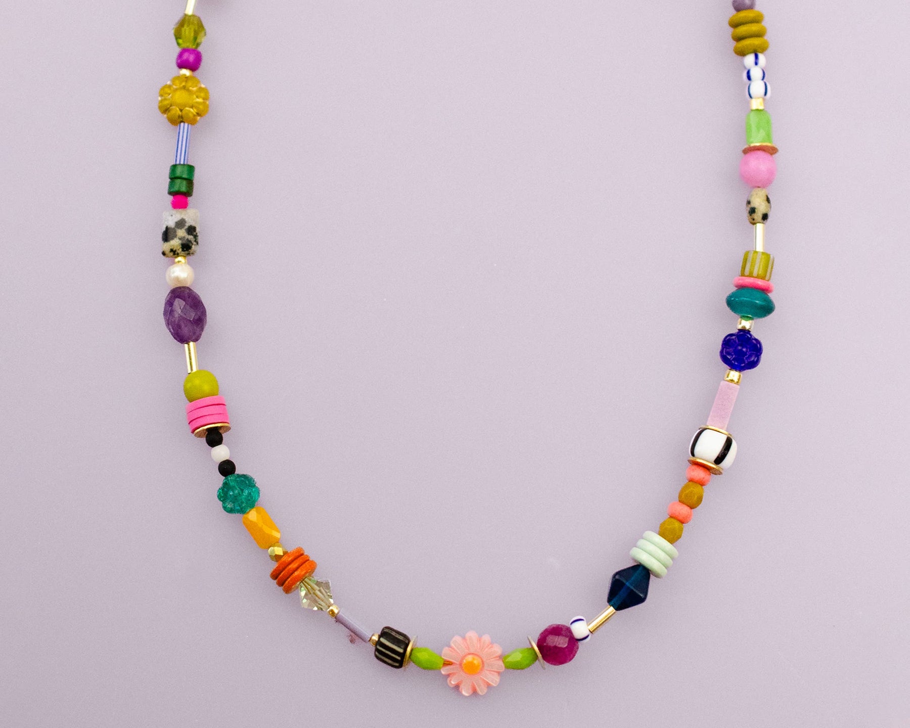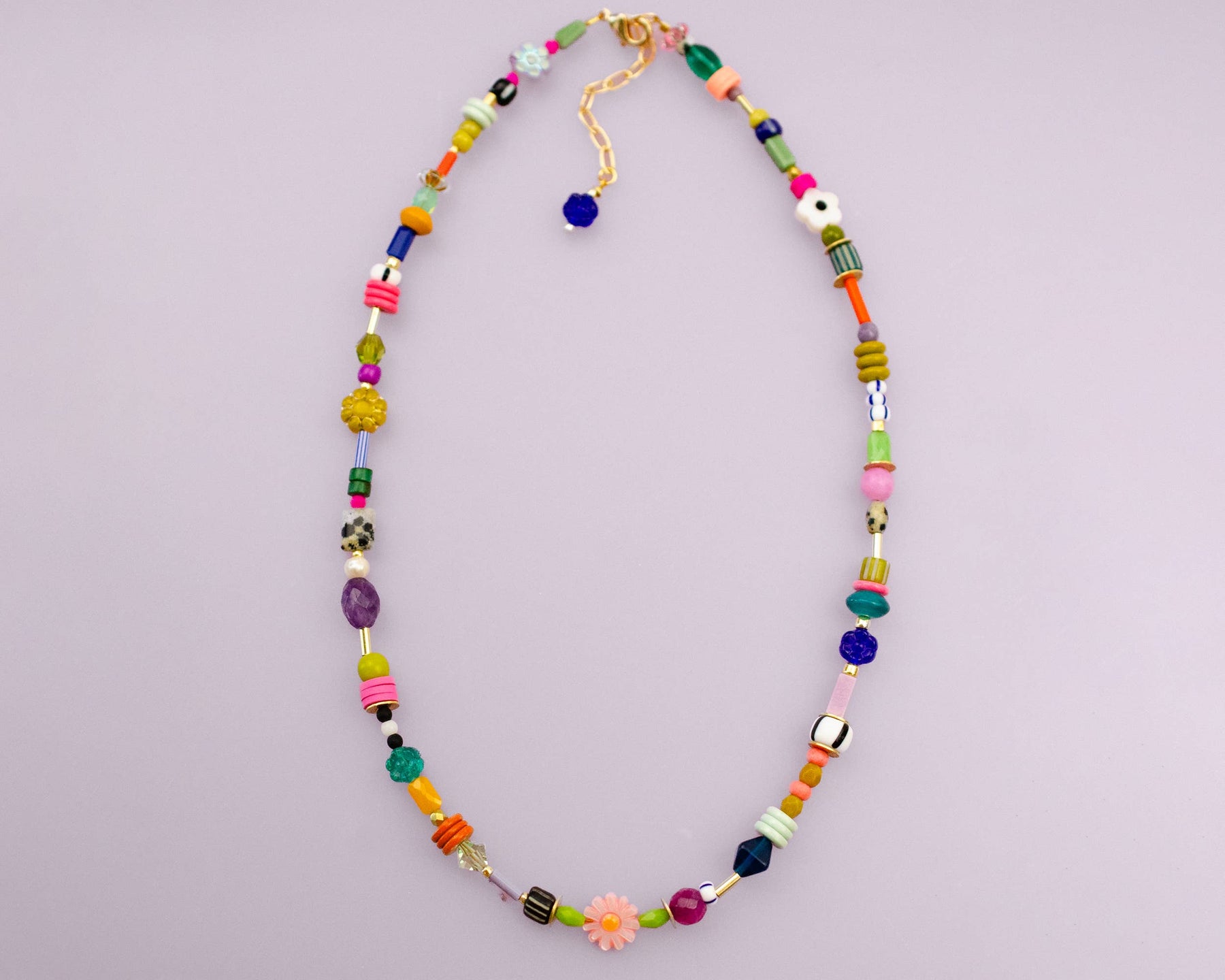 This beaded colorful friendship seed bead necklace features a vibrant assortment of beads thoughtfully strung together for a playful, collected feel. Designed with natural gemstones, Czech glass, seed beads, African glass, pearl, shell, and crystals, each necklace is full of personality and subtle texture. The mix of shapes and colors makes every piece feel special and one of a kind, perfect for gifting or adding a meaningful pop to your everyday look.
