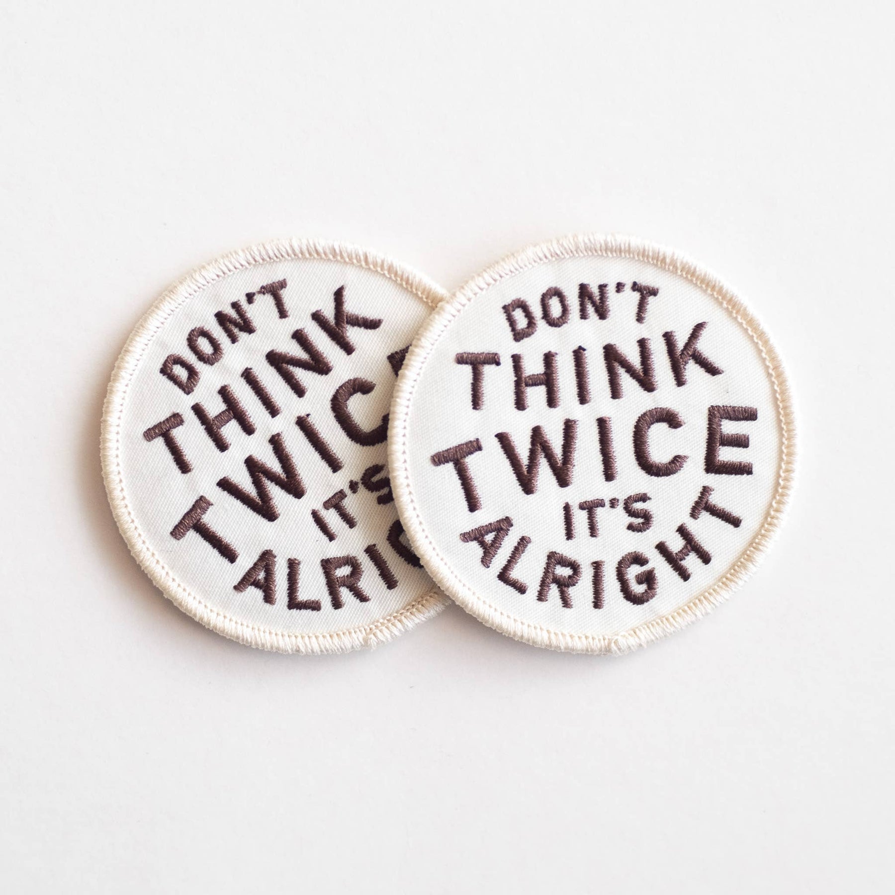 This embroidered iron-on patch features the iconic phrase “Don’t Think Twice, It’s Alright” in a soft, vintage-inspired circular design. The neutral tones and classic lettering give it an easy, timeless feel that fits right in on jackets, bags, or hats. It’s a thoughtful little piece for music lovers, old souls, and anyone who appreciates a calm, reassuring message they can carry with them.