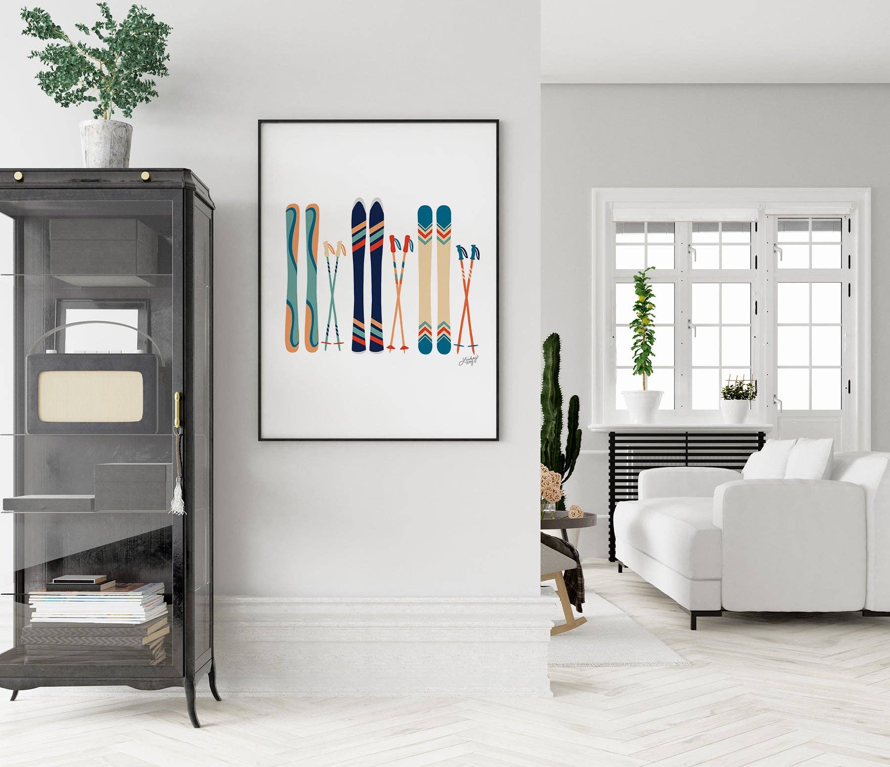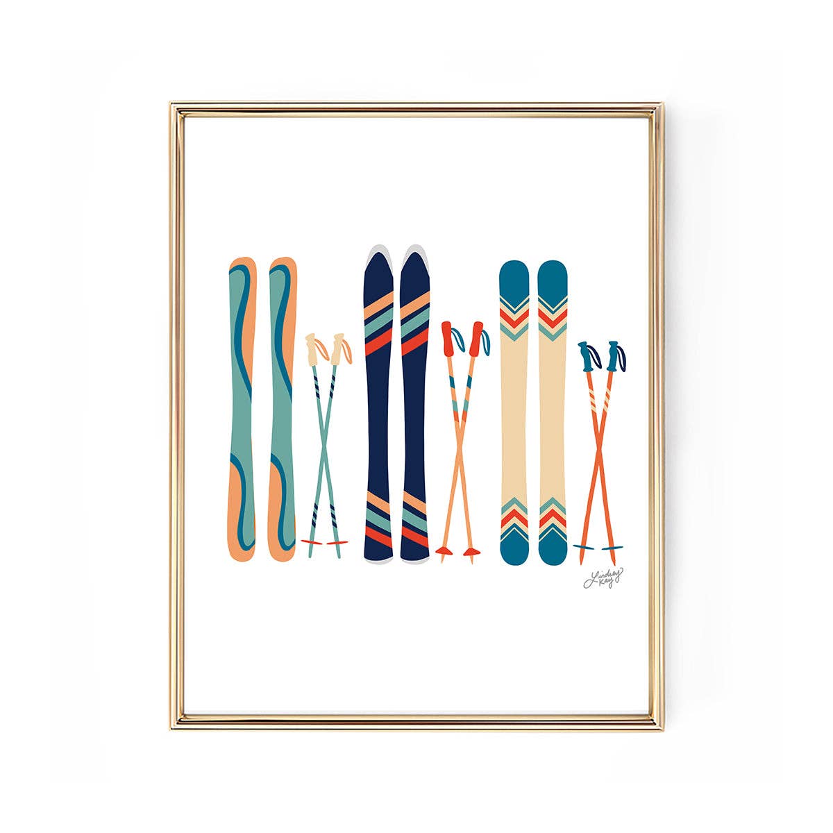The Ski’s Illustration (Teal/Orange Palette) – Art Print features a hand-drawn lineup of vintage-inspired skis and poles in a fresh teal and orange color palette. Clean, playful, and full of alpine charm, this print adds personality to cabins, ski homes, entryways, and adventure-inspired spaces.