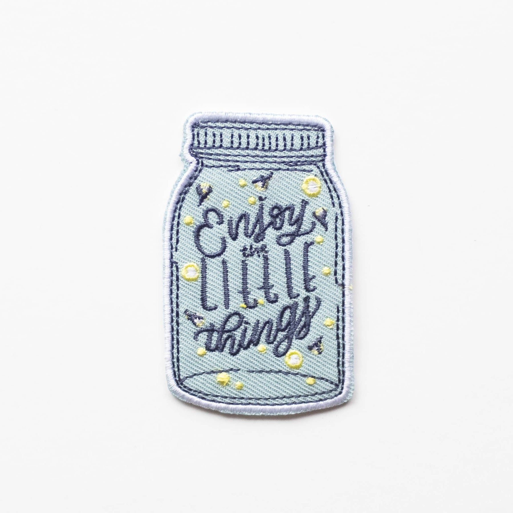 This embroidered iron-on patch features a sweet mason jar filled with tiny fireflies and the phrase “Enjoy the Little Things” stitched in soft, calming tones. The illustration feels nostalgic and comforting, like summer evenings slowed down just enough to savor. It’s a lovely, meaningful accent for jackets, backpacks, or totes, and a thoughtful gift for anyone who appreciates small joys and quiet details.