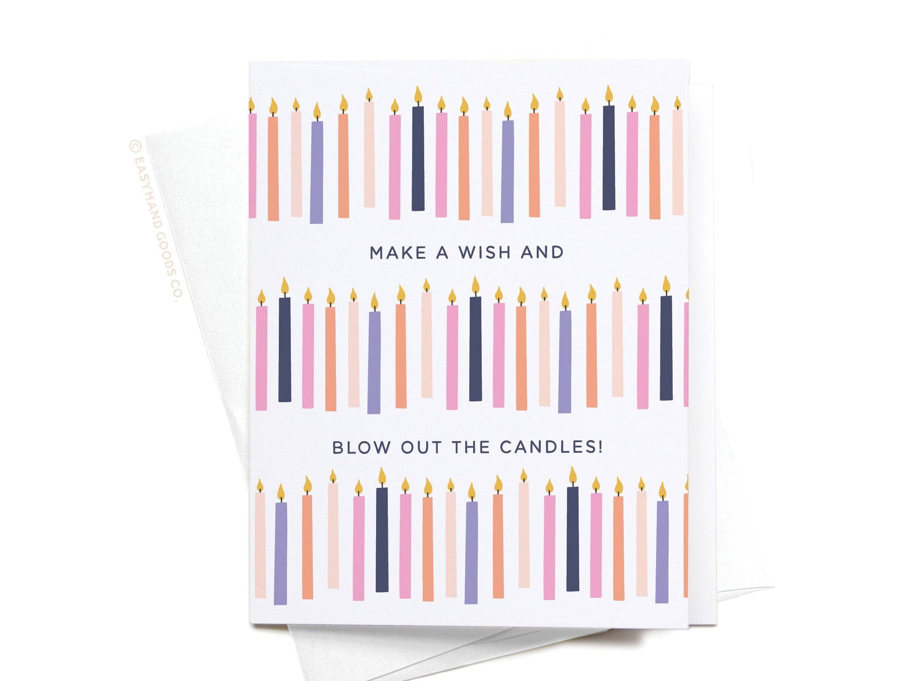 The Make a Wish and Blow Out the Candles Greeting Card captures everything we love about birthdays — candles, wishes, and simple joy. With rows of softly colored candles and a clean, modern layout, this card feels both classic and fresh.
