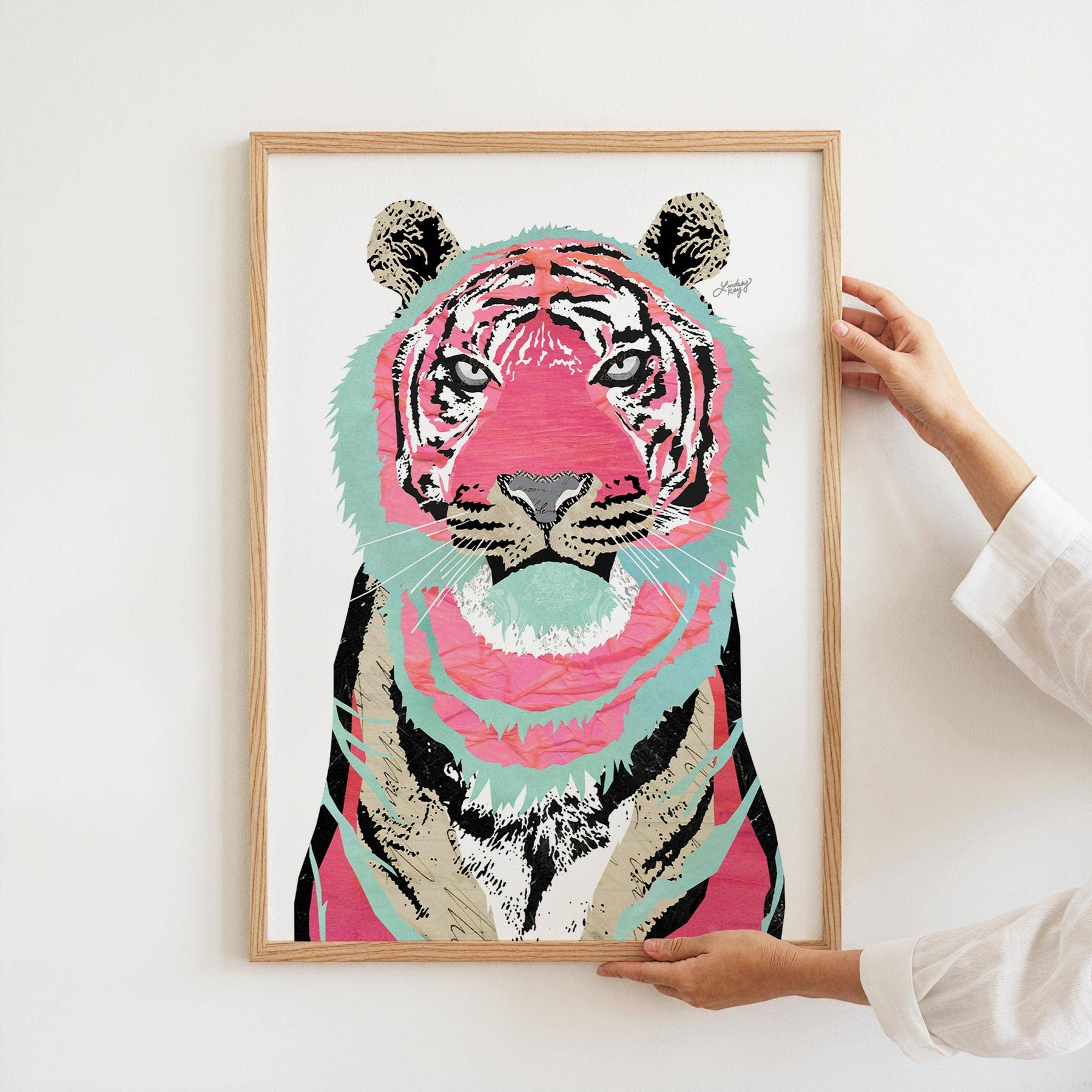 Pink/Teal Tiger Collage Illustration - Art Print