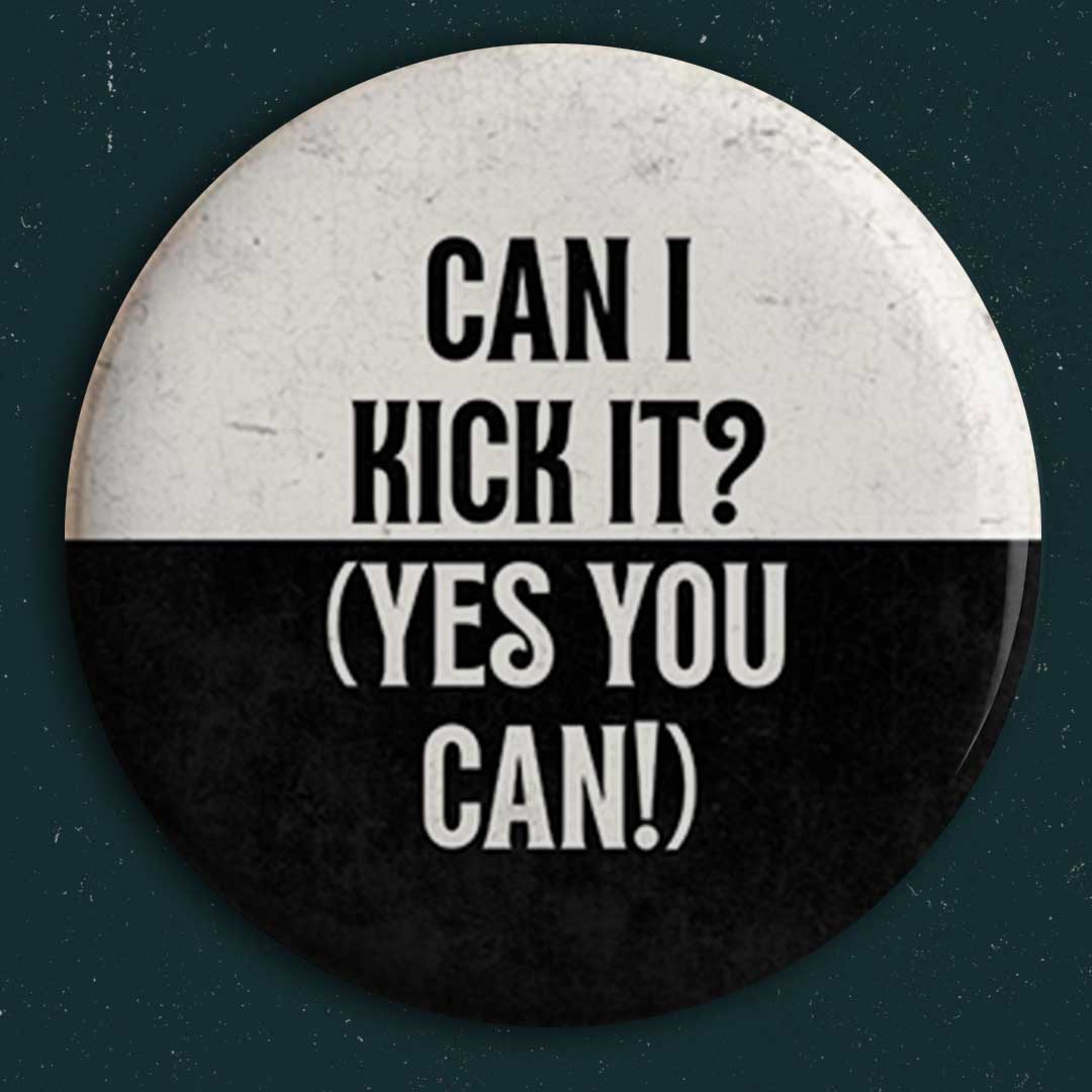A classic line that never misses. This “Can I Kick It? (Yes You Can!)” button is a nod to hip-hop history and effortless cool.