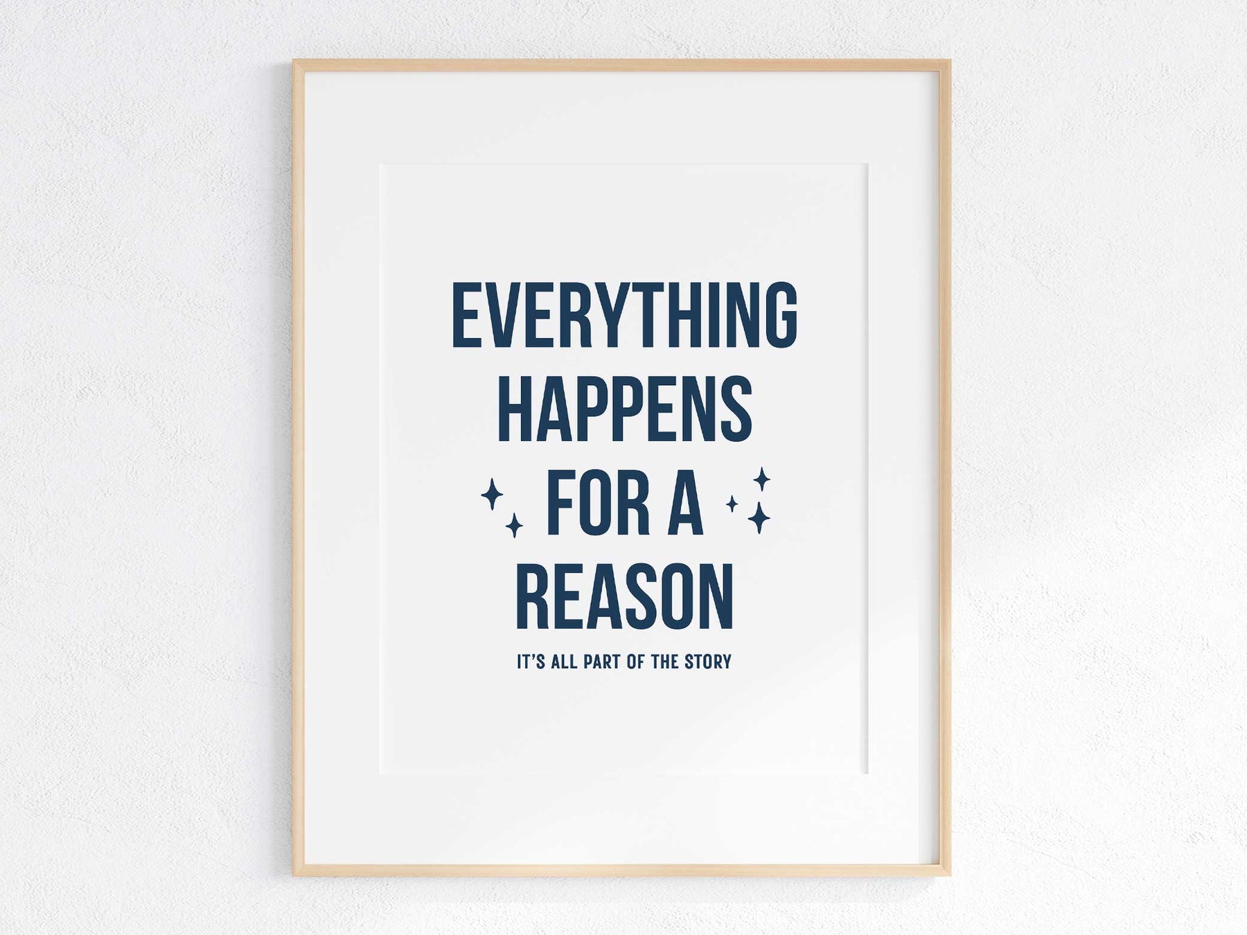 Find a little peace in the reminder that Everything Happens for a Reason. This minimalist art print combines a clean, modern design with a calming message that helps you stay grounded through life’s ups and downs. Perfect for bedrooms, offices, or cozy corners that need a little daily encouragement.